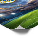 Wall Art & Décor: Um campo de futebol cósmico, banhado à luz celeste, com a crista Real Madrid a brilhar no seu coração.