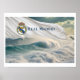 Um design artístico com ondas brancas suaves fluindo através da canvas, inspirado pela energia dos fãs do Real Madrid. A crista do clube está perfeitamente integrada no topo, com sotaques azuis e ouros.