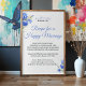 Elegante pôster de presente de chá de panela de noiva com um design moderno de “Receita para um Casamento Feliz” em um estilo floral de íris azul suave. Perfeito como um presente de chá de panela de noiva Algo Azul ou lembrança de casamento, esta arte de parede celebra o amor, a parceria e uma vida significativa juntos.