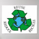 O mundo rodeado pelas palavras reutilizar, reciclar, reduzir.