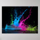 Fotografia dinâmica e vibrante de um tênis casual contra um fundo preto mate. Um espetacular raspamento de tinta neon, com cores em rosa claro, azul elétrico e verde brilhante, irrompe atrás do calçado, criando uma sensação de energia e movimento explosivos. As gotículas de tinta são congeladas ao ar de médio, contrastando nitidamente com as tonalidades sólidas, cinzas, do tênis. A cena é artística e de alta energia.