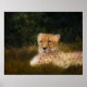 Um guepardo relaxa na capa longa de seu composto no Fossil Rim Wildlife Center em Glen Rosa, Texas. Esta pintura digital é baseada em uma fotografia original de Jayne Wilson. Uma parte das receitas das vendas deste poster será doada ao Fossil Rim Wildlife Center.
