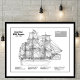 Planos de nave HMS Bounty. O famoso navio do século XVIII, William Bligh. Enviar plano. Planos de Desenho ou Esquemas com contorno de design para Recompensa HMS