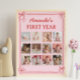 Celebrate your little girl’s special moments with our Red and Pink Bow Cake Birthday Photo Milestone Poster. Featuring a charming mix of red and pink hues, dainty bows, and a sweet cake illustration, this poster beautifully highlights your child’s photos, favorite things, and milestones from her first year. Perfect for displaying at the birthday party, as part of a photo backdrop, or keeping as a treasured keepsake, it adds a personal and elegant touch to your red and pink bow birthday theme.