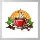Red coffee cup on a saucer filled with coffee, realistic coffee cup with smoke, Coffee cup beverage, cafe breakfast illustration, Tasty Coffee, hot cup of coffee, coffee beans next to the cup