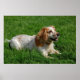Um coquetel inglês branco e vermelho, masculino, espanhol. O inglês Cocker Spaniel é uma raça de cães-pistola. É uma das mais variadas variedades de espanhol e de alguma forma se assemelha ao seu primo americano, o americano Cocker Spaniel, embora esteja mais próximo da forma de "cão-de-trabalho" do Field Spaniel e do Springer Spaniel. Fora dos EUA, a raça é normalmente conhecida simplesmente como "Cocker Spaniel", tal como o é o "Cocker Spaniel" americano dentro dos EUA. Devido à disposição feliz da raça e à sua cauda contínua, foi-lhe dado o apelido "feliz".