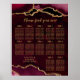 Poster Red Gold Agate Wedding Seating Chart 12 Table