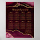 Poster Red Gold Agate Wedding Seating Chart 8 Table