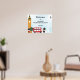 Esta é uma bela placa de poster de boas-vindas de aniversário de Londres com torre de relógio, ônibus de Londres com dois andares vermelhos e outros sotaques bonitos. Há um fundo de abstrato de aquarela azul com imagens de fogos de artifício e uma roda-férris em branco. A idade no canto superior direito é personalizável. O ônibus vermelho tem uma faixa de "Parabéns!" e pode ser personalizado com o nome do aniversariante (ou da menina).