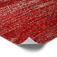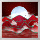 design de paisagem abstrato em vários tons de vermelho com um luar, colinas, árvores, nuvens e aves.