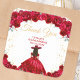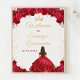 Esta elegante e glamourosa placa de boas-vindas da Quinceañera apresenta uma bela princesa com cabelo escuro num vestido vermelho. O texto combina o script manuscrito e as fontes sans serif modernas para um aspecto elegante e sofisticado. Os arranjos florais e o confete de ouro criam a mistura perfeita de rústicos e quicos. Gráficos por www.etsy.com/uk/shop/SunflowerDayLove