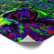 Esta Pintura Digital Original a Óleo por My Rubio Garden apresenta uma pintura de arte líquida abstrata em azul real e água-marinha com sotaques laranja, verde limão, preto e roxo. O resultado é um design abstrato trippy e groovy que você vai amar!