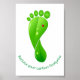 Você cuida do nosso belo planeta e quer que outros façam o mesmo? Neste item, você vê uma pegada feita de folhas, junto com joias e gotas de água com o texto "Reduza sua pegada de carbono" Tema de consciência ambiental.