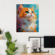 A charming digital painting of a Persian kitten with a luxurious orange and white coat, expressive green eyes, and a soft pastel background. This artwork blends realism with painterly abstraction, capturing the gentle elegance and adorable curiosity of the Persian breed.