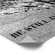 Reflexo preto e branco de uma árvore de inverno sem folhas em uma poça. Encontrei esta imagem numa poça de gelo derretido um dia de inverno. Acrescentei a frase "Fique quieto e saiba que sou Deus" porque me lembra daqueles dias de inverno em que as árvores ficam nu e parecem estar segurando o fôlego enquanto esperam a primavera.