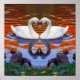 Uma bela fotografia de outono de pássaros numa cena colorida da natureza, mostrando amor entre dois cisnes tocando bicos, como se beijasse. Uma imagem perfeita que pode ser personalizada, mostrando amor está no ar.