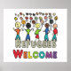 Refugiados design de Boas-vindas mostra pessoas de muitas cores em um grupo de boas-vindas amigável - celebrando a diversidade, novos chegados e assegurando que refugiados e migrantes sejam bem-vindos.