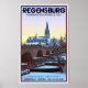 Vista de inverno do rio Donau e Steinerne Brûcke juntamente com a Catedral de Regensburg, Baviera, Alemanha