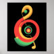 A clave de tripla usada na notação musical reimaginada com cores reggae usando um estilo de círculo vegetal