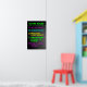O texto colorido sobre o fundo preto do quadro negro diz: Regras de classe _____________ 1. Chegar na hora 2. Todos os eletrônicos pessoais guardados a qualquer momento 3. Mostre um ao outro respeito 4. Quando o professor está falando - você está quieto 5. Mantenha uma atitude positiva Perfeito para o professor em sua vida!