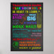 Se você é professor, pegue um para sua sala de aula! É uma maneira divertida de mostrar as regras da sala de aula. Também faz o presente perfeito para o professor em sua vida! Excelente para decoração colorida na sala de aula! Também é um belo presente para o final do ano letivo, o primeiro dia da escola, a apreciação do professor, como presente de Natal para o professor do seu filho, ou apenas porque você quer mostrar apreço a qualquer hora do ano! - Esteja pronto para aprender - Levante a mão - Dream BIG - Divirta-se! - Faça o seu melhor - Duro de trabalho - Seja respeitoso - siga direções - mantenha as mãos em si - diga por favor e obrigado - assuma riscos e cometa erros - acredite em si mesmo