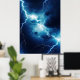 Imagem dramática de relâmpagos a ripar através de nuvens de tempestade no céu noturno.
