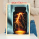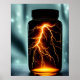 O legal poster de arte digital apresenta um dramático e brilhante ataque de raios dentro a um frasco fechado.