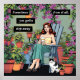 Às vezes você tem que se afastar de tudo. Uma ilustração divertida de uma mulher sentada no seu convés rodeada de plantas com um gato preto e branco fofo, segurando uma xícara de café quente.