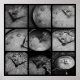 Um poster de nove painéis de um relógio quebrado, congelado no gelo.