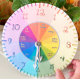 Roda colorida Diga Tecido da hora Números de fonte Relógio poster / poster imprimível pré-impresso - Projeto de artesanato do relógio imprimível Teoria de cor / Roda colorida com: 3 cores primárias - azul, vermelho, amarelo 3 cores secundárias - roxo, laranja, verde 3 cores terciárias - violeta azul, violeta vermelha, laranja vermelha, laranja amarelo, verde amarelo, verde azul e valores, também pastado el cores sob cores mais escuras para números de fonte do tecido, com centro, valor brilhante, roda de cor do médio, rotulada com suas cores, mostrando seus nomes de cor em cores de fonte que estão em sua face oposta, cores complementares, exemplo: azul verde é rotulado na cor vermelha laranja. Cada família de cores tem incrementos de 30 graus, para cada alteração de 5 minutos, 12 cores, 12 números rotulados e as marcas minúsculas se coordenam com a família de cores por que está rodeada, e se modificam à medida que se move para a próxima família de cores. Este é um tamanho de letra imprimível disponível para compra, para você fazer seu próprio relógio móvel, com as mãos para cortar. Basta usar descobertas de joias, botões, fios, tubos, lavadores, brades, fios como exemplos para conectar as mãos à roda colorida, com a face do relógio! Imprimível com diâmetro largo de 8" está disponível na minha loja sob papelaria / cartolina, pré-impressa, então tudo o que você tem que fazer é cortar o círculo do relógio, e as mãos de hora e minuto, furar os centros das mãos e o relógio da roda colorida, gentilmente, mas não dobrando completamente ao meio, e furar o ponto do círculo branco, que é dobrado ao meio, então você só fura um meio círculo. empurre-o de volta para o círculo do cheio, fazer um furo de círculo, depois alimente suas partes através dos orifícios e faça as mãos móveis baterem! Pode ser laminado com marca escocesa transparente, fotossegura, com folhas autolaminadas ou papel de contato/revestimento de prateleiras, para utilizações múltiplas! Excelente para que a arte de muro fique por trás, ou a arte de mesa apoiada em uma mesa de mesa, pelo quarto de criança, sala de brincadeira, ou por professores/pais da escola, para ajudar crianças a aprender não apenas a dizer tempo, mas a aprender suas cores! Obrigado! Kristie Hubler http://zazzle.com/store/fabricatedframes/products fabricatedframescom@gmail.com