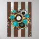 Poster Relógio e Rosas de Turquesa em Striping