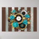 Poster Relógio e Rosas de Turquesa em Striping