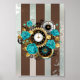 Poster Relógio e Rosas de Turquesa em Striping