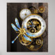 Poster Relógio Steampunk com Dragonfly Mecânica
