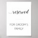 Esta placa "reservada para a família do noivo" é perfeita para a recepção ou no pântano ou cadeiras na cerimônia. Isto é parte da coleção Alejandra.
