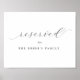 Um sinal de casamento minimalista com "reservado" em letra de escrita de caligrafia negra e "a família da noiva" em letra serif. Disponível como download digital.