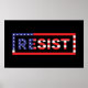 Esta design apresenta a palavra RESIST escrita em cores de bandeira americana sobre fundo escuro.