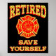 Poster Retired Save Yourself Funny Fireman Retirement Vin
