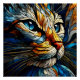 Um retrato da cabeça de um gato bonito é apresentado em um estilo de vidro manchado por abstrato. Sombras de azul, amarelo e turquesa tecem-se nesta composição artística, capturando o encanto felino em uma exibição mesmerizante e elegante.