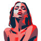 Adorem seus itens favoritos com este incrível retrato geométrico de uma mulher. As linhas e os tons vermelhos/azuis vibrantes criam um design único e moderno para presentes ou decoração.