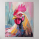 Um retrato moderno e esquisito de uma galinha, criado com cores pastéis brilhantes e pinceladas de abstrato expressivas. O uso lúdico de pinks, blues e amarelos dá à pintura uma sensação de capricho, enquanto a escova texturizada adiciona profundidade e energia à composição. Essa tomada contemporânea do retrato animal é perfeita para adicionar charme e caráter a qualquer espaço.