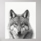 Poster Retrato de Lobo Preto Branco
