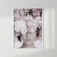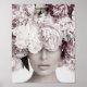 Bonitas colônias de rosa empoeiradas escondem o rosto de um modelo de moda. Esta poster de menina moderna é uma design excelente numa sala neutra, cinza ou eclética.