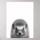 Poster Retrato moderno de ouriço na floresta preto branco