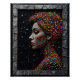 "Um trabalho de arte de bordado surpreendente e imaginativo que retrata o perfil da mulher, construído meticulosamente a partir de um arranjo denso de pinos coloridos, semelhantes à cabeça. As características faciais — olho, nariz, lábios — e o cabelo fluente são formados por clustering, camadas e entrelaçamento cuidadosos desses "pinos" bordados, criando uma superfície altamente texturizada e vibrante. As cabeças de pinos são costuradas como elementos circulares pequenos, erguidos, usando técnicas como nós franceses densos, nós de pinos ou pequenos pontos de pino acolchoados em uma variedade de fios brilhantes — vermelhos, amarelos, azuis, verdes, púrpuras — dando-lhes uma aparência tridimensional, semelhante a uma beleia. Os eixos dos pinos são sutilmente sugeridos com pontos finos e curtos de hetero em fios metálicos prateados ou de cinza, que se estendem ligeiramente de algumas cabeças ou que são implícitos através de um agrupamento denso. Toda a composição cria uma ilusão de inúmeras cabeças de pinos coloridas moldando o retrato, colocadas sobre um fundo escuro estrelado — cinzas pretas ou profundas — para tornar as cores vibrantes pop vívidas. A fronteira imita uma mármore rachada ou uma pedra texturizada, bordada com cinzas variadas, fios brancos e de terra usando ponto de corrente, ponto de divisão ou linhas tochadas para representar padrões de crack, moldando o mosaico intenso de cores e texturas. Esta peça combina beleza escultórica divertida com intrincado artesanato, enfatizando textura rica, efeitos mosaicos vibrantes, e um impacto visual único e táctil."