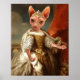 Retrato de gato real, pintado a partir de uma foto da linda Gazela do gato Sphynx. Elegante e confiante, a Gazelle fica num vestido de rainha do ouro rico. (Me mande um retrato real personalizado do seu gato.)