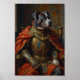 Um poderoso retrato real apresentando o Pitbull retratado como um rei guerreiro. Inspirado em pinturas clássicas da renascença, o design destaca a estrutura muscular da raça e a expressão confiante com armadura real detalhada e coroa régia.