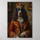 Um retrato real elegante com o Springer Spaniel retratado como um lorde inglês. Inspirado em pinturas clássicas da renascença, o design destaca as belas orelhas emplumadas da raça e a expressão nobre com trajes aristocráticos luxuosos e coroa real.