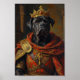 Um retrato real imponente com o poderoso Cane Corso retratado como um imperador romano. Inspirado em pinturas clássicas da renascença, o design destaca a estrutura muscular da raça e a expressão confiante com roupas imperiais, uma coroa de louros e estilo romano régio.