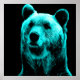 Esta design bonito apresenta um retrato de um urso grisalho giro em uma turquesa brilhante sobre um fundo preto.